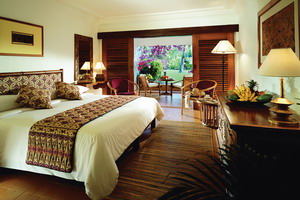 Les chambres sont spacieuses (40 m2), décorées avec des matériaux locaux (bois sculpté, batiks) et très bien équipées : climatisation, TV, radio, mini-bar, coffre-fort, terrasse ou balcon. 2 catégories : les Superior Garden avec vue sur le jardin et les Deluxe Ocean orientées vers la plage. En outre, les chambres Regency Club bénéficient d’un service plus raffiné, avec accès à un pavillon ouvert sur les jardins, avec petit déjeuner continental et cocktails en fin d’après-midi offerts.