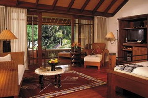 Les pavillons sont très spacieux (90 m2) avec une grande chambre et une terrasse jardin privative avec vue jardin ou océan. Les 12 villas de 255 m2 avec jardin privatif et pavillon de repos (dont 7 avec piscine privée) pour un séjour d’exception. Très belle architecture et décoration de style indonésien jouant sur les contrastes entre matières et couleurs : teck, ikats, objets d’artisanat. Grande salle de bains avec douche intérieure et baignoire extérieure dans un mini-jardin. Equipement luxueux : climatisation, TV, téléphone, lecteur CD et vidéo. Corbeille de fruits et journal chaque jour dans votre chambre.