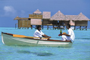 Luxe écologique et grande originalité, à 20 min en bateau rapide de l’aéroport. Si au Soneva Fushi (p.22), c’est le vert qui domine, ici, tout est bleu et transparent. C’est le seul resort de luxe des Maldives dont toutes les villas sont sur pilotis.