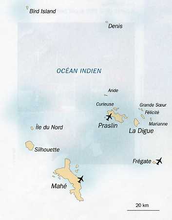 L'Île de Mahé (la plus grande aux Seychelles), avec sa capitale aux vieilles maisons créoles, Victoria, vous ouvre les portes de l'archipel de Seychelles. Vous allez découvrir pendand votre séjour aus Seychelles des imposants rochers de granit aux reflets rosés et formes étranges sculptées par les alizés, aux drôles de coco-fesses, uniques au monde. De Praslin et sa Vallée de Mai, en passant par Cerf Island, ou le parc marin de Sainte-Anne qui abrite plus de 150 espèces de poissons, paradis pour les amateurs de plongée, chaque île prodigue généreusement ses richesses. Silhouette une autre île aux Seychelles offre désormais tout le confort nécessaire pour goûter la pureté de ses lignes sublimes. Denis, île corallienne immaculée, ou Desroches, bijou rare doté d'une majestueuse cocoteraie, vous accueillent pour un sentiment originel, une harmonie parfaite avec la nature. Les Seychelles est un jardin d'éden, lumineux et préservé.
